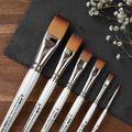 Great for painting wide, even areas and smooth layers. The flat edge helps with corners and can also be used to make thin lines.