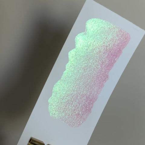 A semi-transparent watercolor with a subtle color shift and chunky pigment. Perfect for adding gentle shimmer and texture to your artwork.